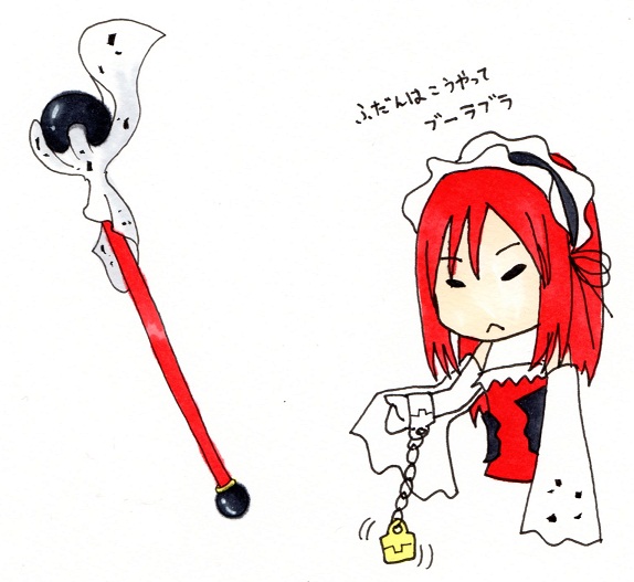 杖が無いと回復が不可能になってしまうので自身の腕に付けている手枷を杖に装着して手放さないようにしている。